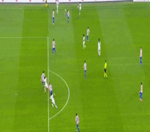 第35分钟,马竞错失绝佳机会,加拉格尔传中,索尔洛特后点面对近乎空门的头球竟然打高。4分钟后,皇马中场被断,马竞连续三脚射门被库尔图瓦和吕迪格合力化解,门前一度风声鹤唳。