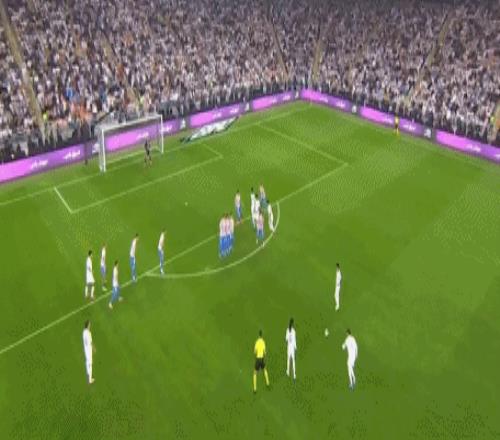开场仅仅开打2分钟,皇马获得前场定位球机会。巴尔韦德在25米外直接起脚,一记势大力沉的世界波直挂左上死角,奥布拉克毫无反应。1-0,皇马取得梦幻开局。
